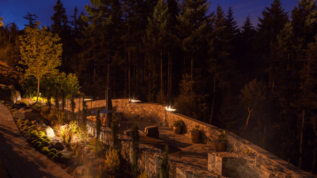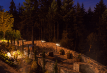 Challenging spaces often become the most inspiring places. What do you do when it seems the land you have is impossible to work with? At Land Story, we are always searching for the secrets and hidden qualities of the land. This site dropped almost 30’ from the front of the house to the back. There was not even a way to walk all the way around the house. There was a great deal of stone on the site. We maximized the stone material and designed a way to gently and elegantly turn this inaccessible slope into a vibrant space with a patio, water feature, fire, hot tub, outdoor shower, and gathering lounge, all connected with a sinuous trail system. We love a good challenge!